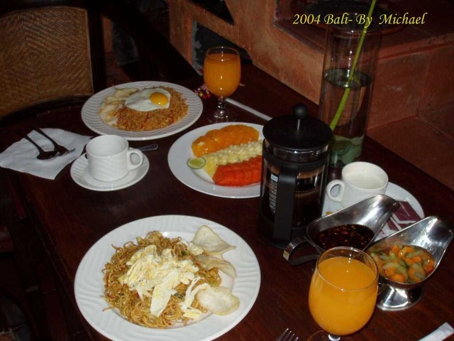 第四天的早餐,我們仍然點了當地的風味早餐,分別是印尼炒麵與印尼炒飯。印尼炒麵仍然維持昨日一樣的水準,QQ 的相當好吃。比較令人失望的是印尼炒飯太硬,大概是印尼人比較喜歡吃較硬的炒飯,不像台灣炒飯較為濕潤比較好下口。