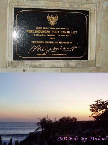 比較起來,我們在體驗過三家SPA 後,最好的還是“Chi… ”,不是因為他們不收錢的,而是整體的感覺,讓客人有備受禮遇的享受。做完SPA 後,已經是下午四點半了,我們計畫要到海神廟看夕陽。上車後,看著計程車司機開車緊張的神態,我們想大概是我們幫他預留的路程時間不太足夠,就這樣我們經歷了這一趟悠閒旅程中唯一的趕場行程, 一路飆車前往海神廟(Tanah Lot)。