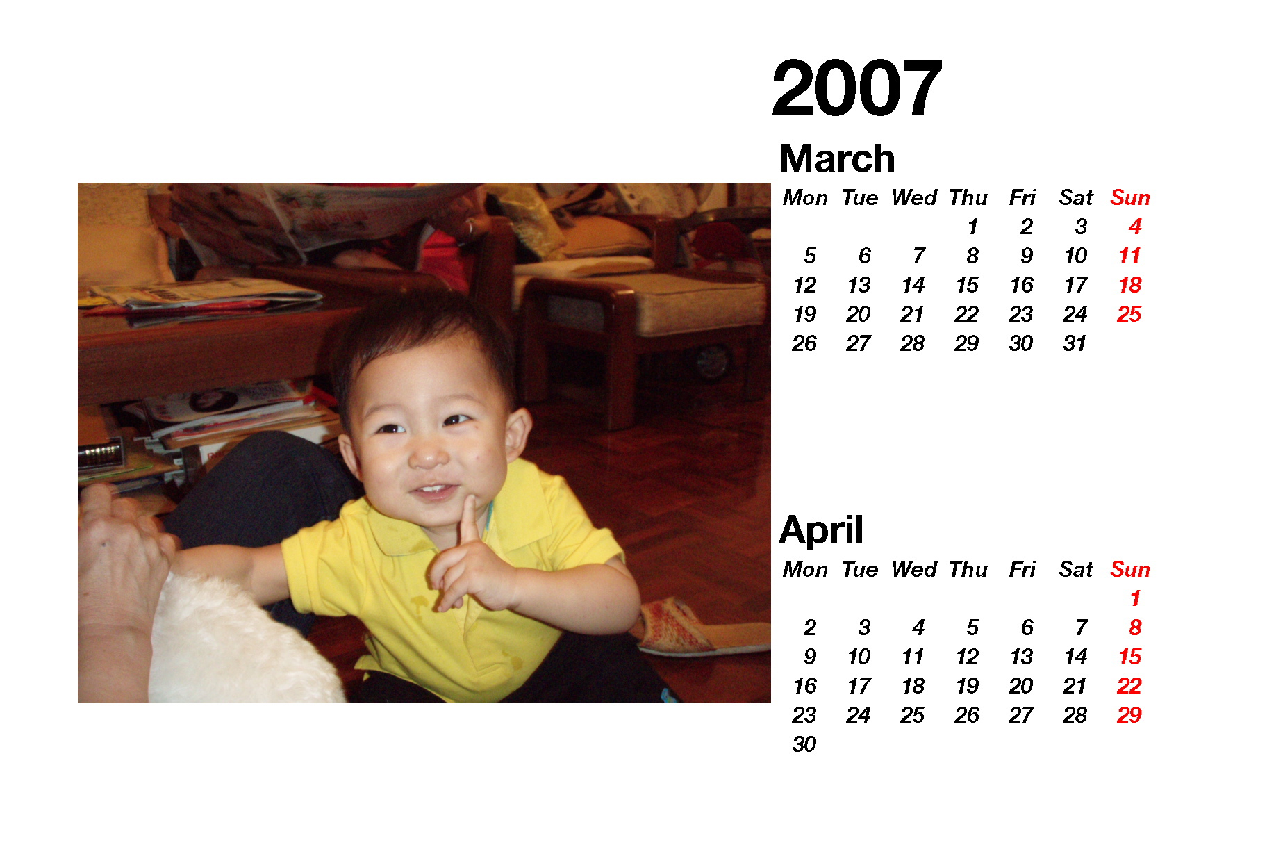 BLOG上沒有紀錄過祺祺的成長紀錄應該算是我的疏忽吧,既然是Miao & Michael's BLOG,怎可以不紀錄寶貝祺祺呢?最早之前是因為想要保留一些些隱私,不太希望小朋友的照片上到公眾網路,後來則是因為處理那些吃喝玩樂的照片都處理不完,而我們又幫祺祺的照了不少相片,整理起來頗為費事,我都將祺祺的照片放入一片又一片的DVD當中。但是最近有感實在是累積太多照片了,許多祺祺以前的照片,看起來既可愛又有紀念意義,代表祺祺不同時期的成長過程,我特別將這些照片製作成一張張雙月曆,放在網路上讓各位叔叔、伯伯、阿姨可以觀賞。而祺祺將在2007年有個弟弟或是妹妹,到時候我們的家與BLOG將會更加熱鬧。