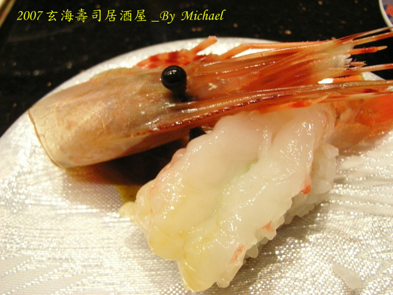 牡丹蝦在握壽司當中是相當討喜的食材,蝦身晶瑩剔透,以壽司刀微微剖成剛好可以鋪在一口醋飯的大小,除了賣相討好外,牡丹蝦的口感軟嫩中帶著一絲絲的嚼勁,比一般甜蝦更具風味。而富含蝦黃的蝦頭,更是大家一定不會放過的美味。