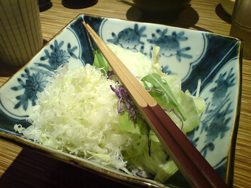 上面的高麗菜絲是店內招待的,無限量供應,可以搭配店裡提供的日式沾醬,酸甜口感,可解油膩。