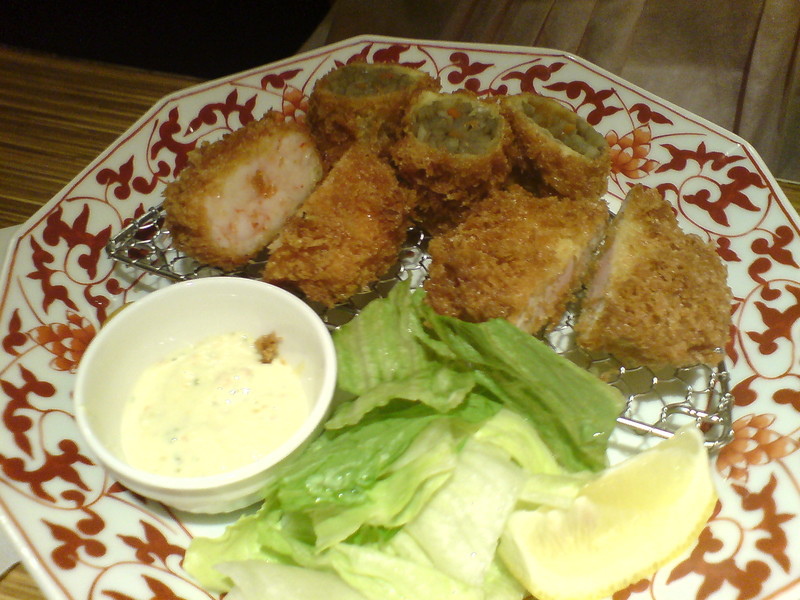 店內的組合套餐,有酥炸野菜及切成小塊的豬排。