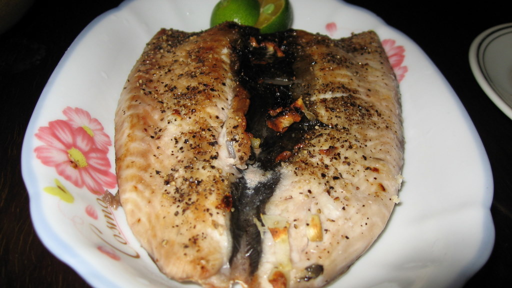 鹽烤虱目魚肚,算是道地的台灣小吃,不帶刺的虱目魚肚,烤起來帶著魚腹油脂香氣,很道地的一道菜。