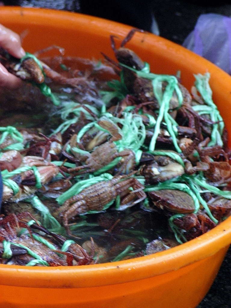 大溪漁港稱不上是個規劃良好觀光魚市,兩側的魚販幾乎把道路佔到只容一台小貨車可以通過的空間;地面常常是潮濕的。但是,遊客可不管這麼多,便宜的海鮮才是這裡最大的賣點。稍低價位的三點蟹,五、六百元可以買到不少隻。