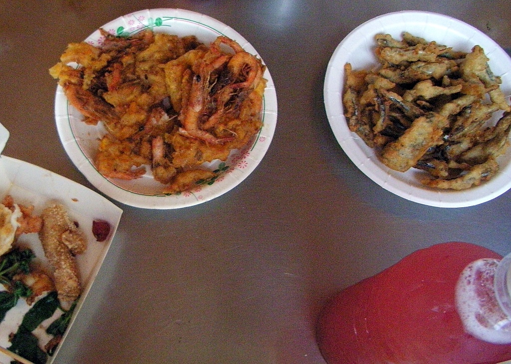 這一攤現炸海鮮就更厲害了,生意比炸魚酥那攤更好,任選三