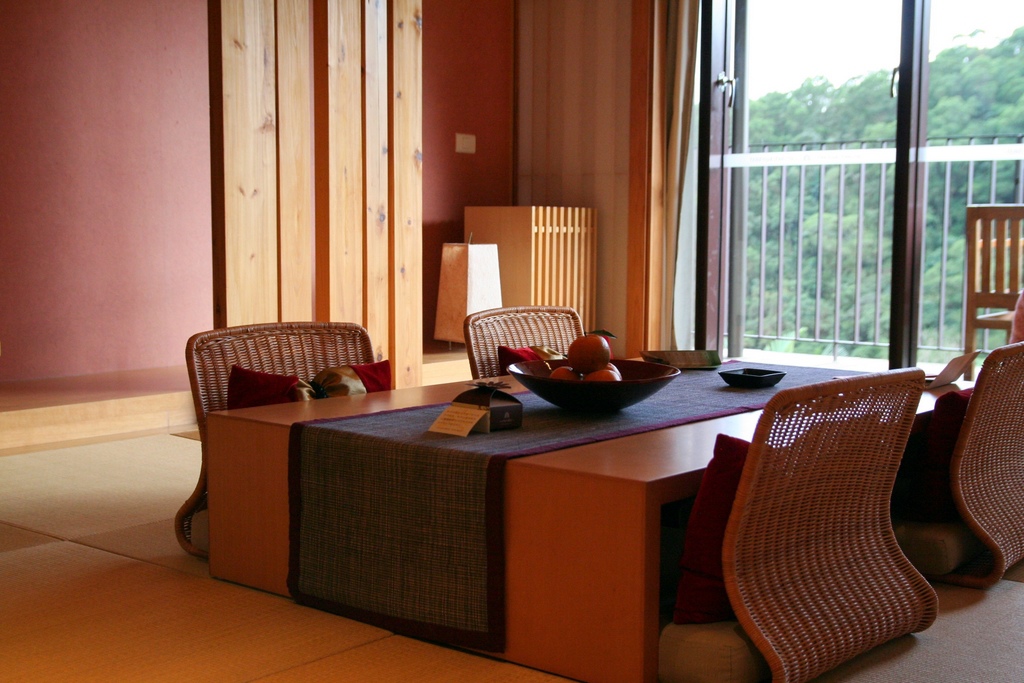 我們總共五個大人、兩個小朋友,所以訂了一個兩人房、一個三人房。三人房是和式的設計,房間沒有床,只有榻榻米。下午check in時,會有服務人員幫忙沏一壺茶。慢慢的進入礁溪老爺所設定的悠閒情境中。而和式的房間,對小朋友來說也相當適合,或坐、或臥、怎麼跑都不用太擔心。