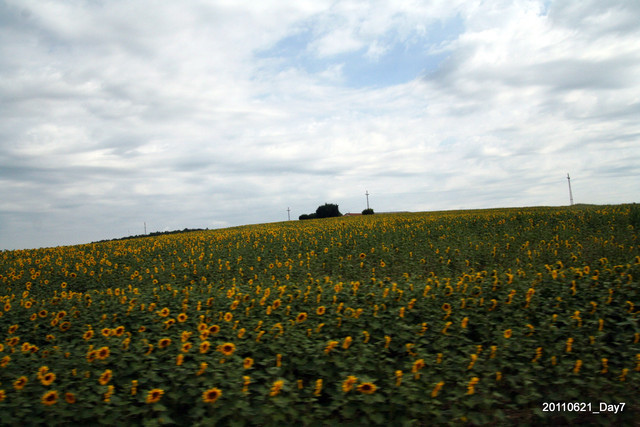 離開佩依格的路邊,常常可以看到為數頗多的向日葵田。導遊開玩笑的說,夏至那天向日葵最累,因為要加班很久。