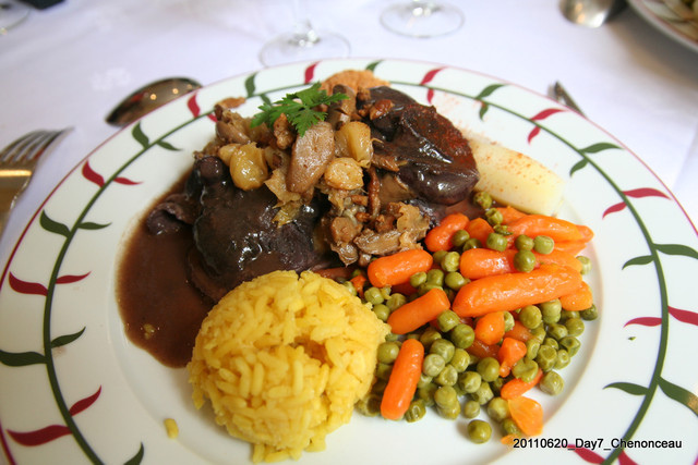 主餐是豬排加上烤豆子。坦白說這裡的風味餐,比Carcasonne的好吃。 ^___^