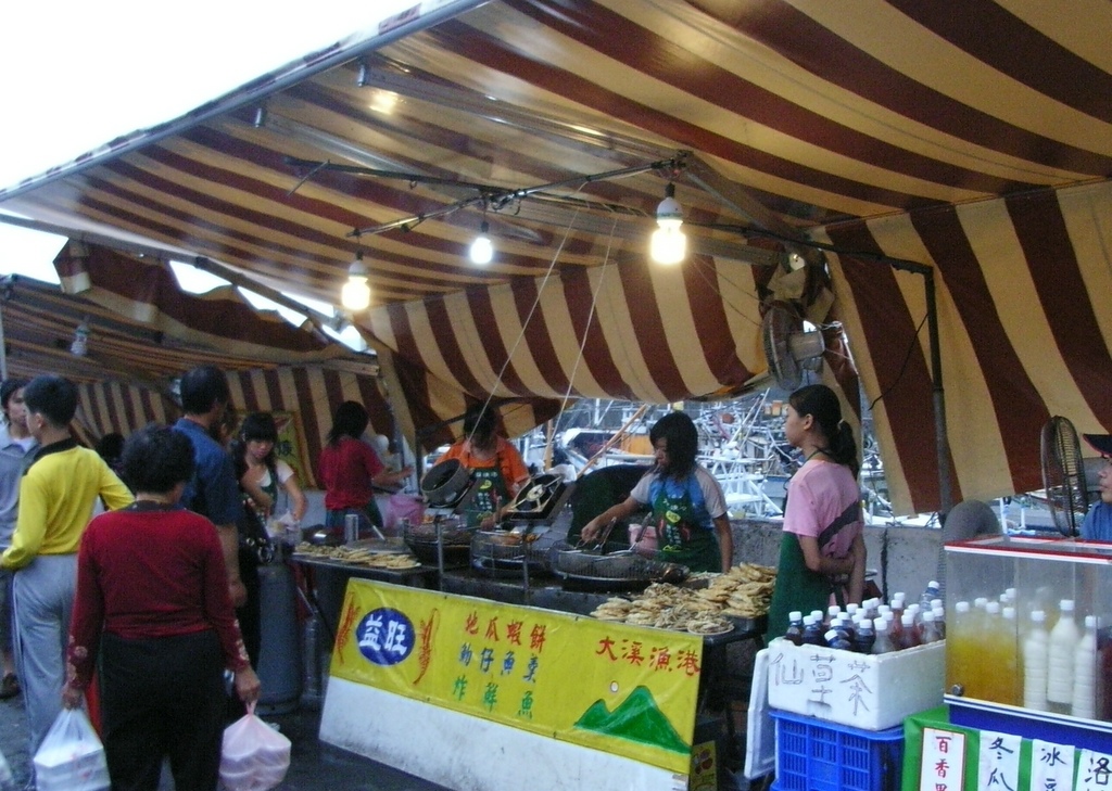 大溪漁港稱不上是個規劃良好觀光魚市,兩側的魚販幾乎把道路佔到只容一台小貨車可以通過的空間;地面常常是潮濕的。但是,遊客可不管這麼多,便宜的海鮮才是這裡最大的賣點。稍低價位的三點蟹,五、六百元可以買到不少隻。