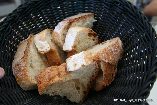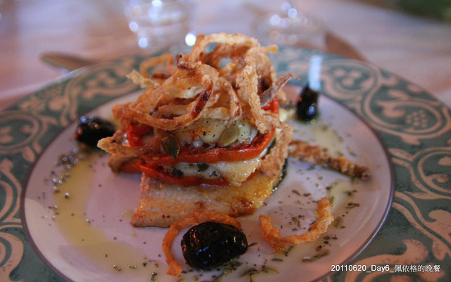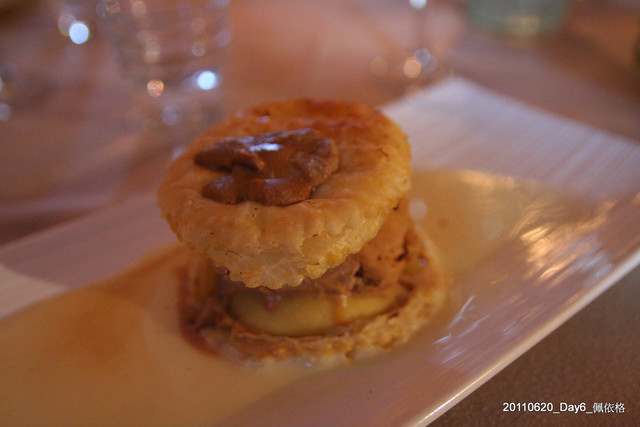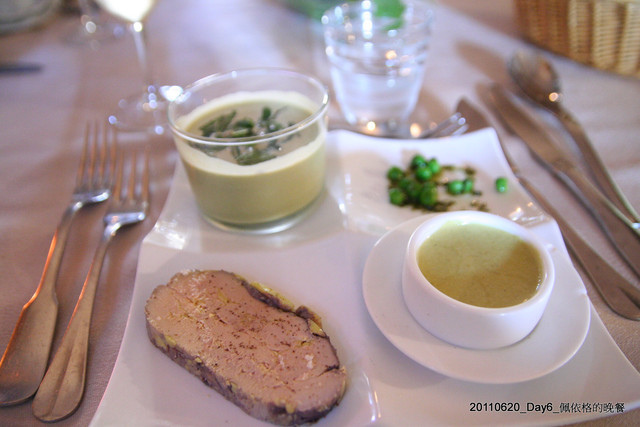 湯雖然有些鹹,但是還蠻有特色的。翠綠色的冷湯,有消暑的感覺。左下角的鵝肝,可是給了足足一大塊,配麵包還蠻好吃的。