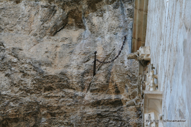 照片中有一把寶劍插近山壁之中,相傳是當時法國國王查理曼大帝麾下的一位聖騎士羅蘭所有,劍身中藏著聖母的衣角和耶穌的血與毛髮,這把劍稱為「羅蘭之劍」,也有「天使之劍」的別名,羅蘭在臨死前不願將寶劍落入敵人之手而奮力將劍射入山壁。此後這把劍便一直插在鶴卡瑪度的山壁上歷經數百年,屹立不搖。