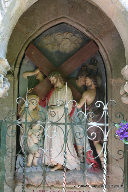 在山城的上坡路段,有模擬耶穌受難的場景。