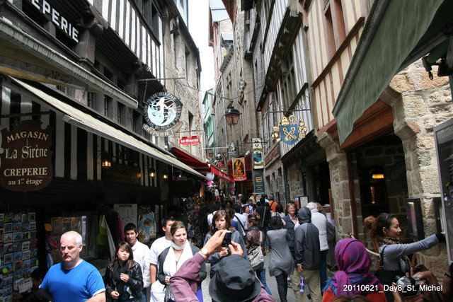 聖米歇爾山的旅客非常多,讓我想起台灣的山城──九份。不過這裡的商店街雖然也是商業味濃厚,但是比九份有規畫。不會給人很雜亂的感覺。
