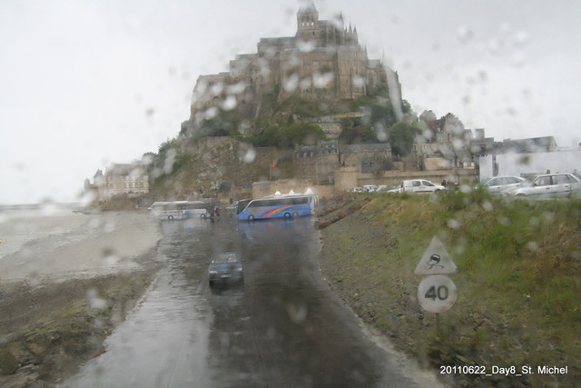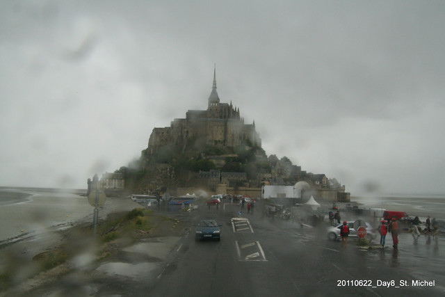 衝上車的我們已經全身濕透了。再次回頭看一眼聖米歇爾山。下一站我們要前往"海盜的故鄉"──聖馬洛。