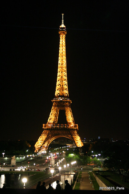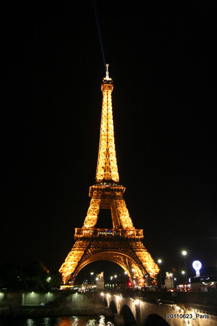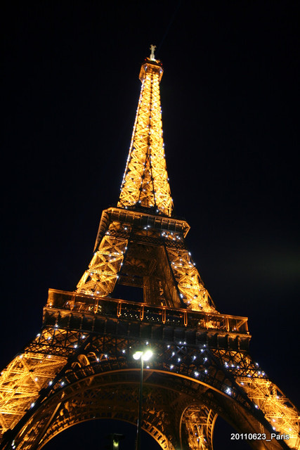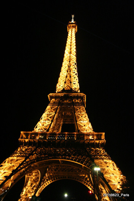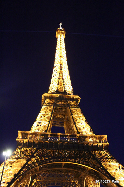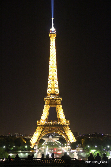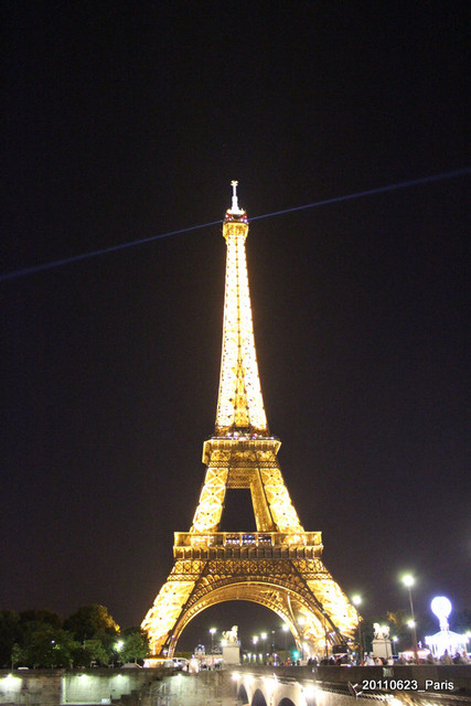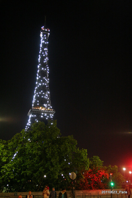 每個整點,巴黎鐵塔都會有特別的閃光,等到晚上一點,就是像上圖這樣──沒有背景光了,閃完後的鐵塔即將變成完全無燈的狀態。